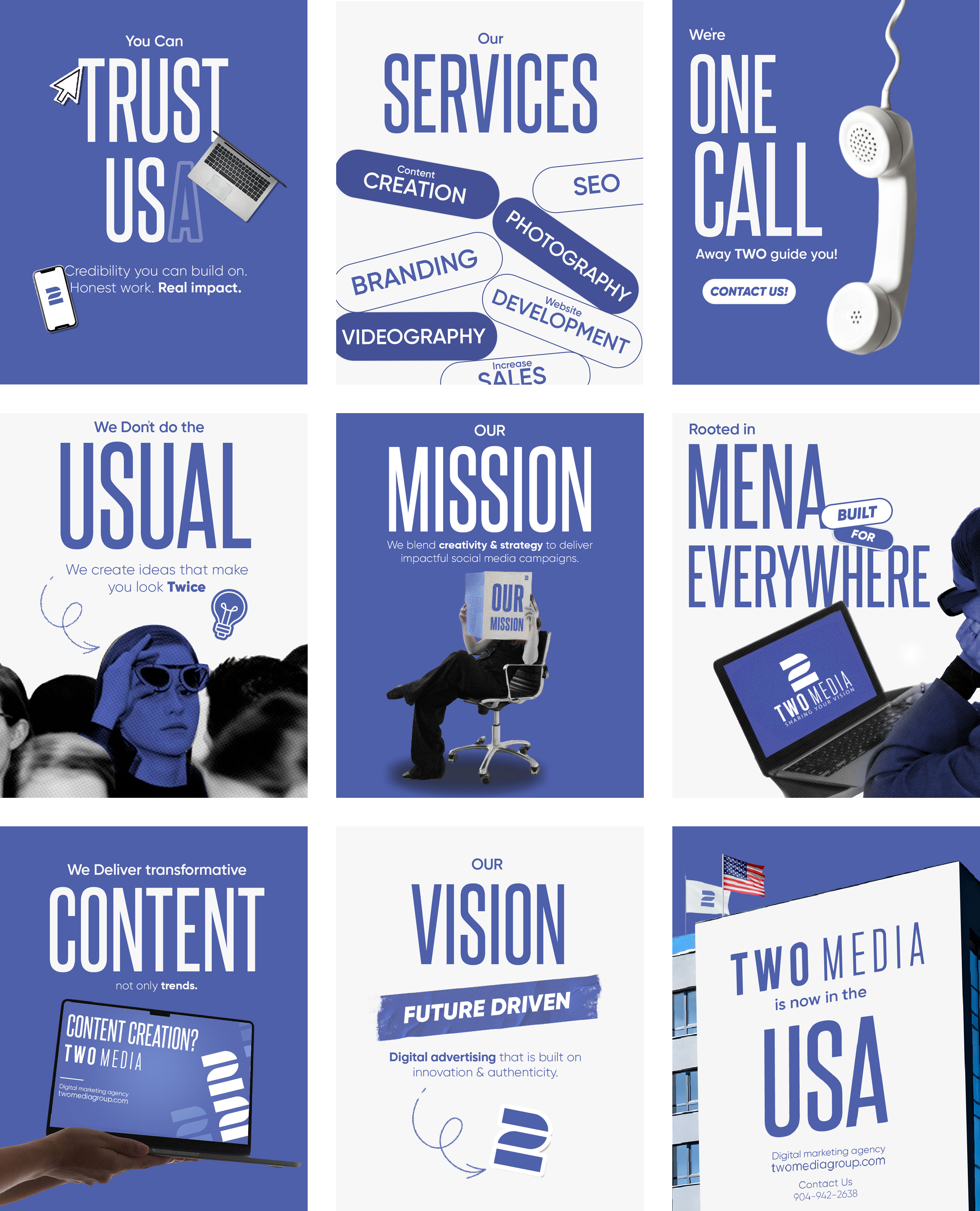 A COLLECTION OF GRID DESIGNS THAT FOLLOWS THE AGENCY’S BRAND IDENTITY AND DIFFERENT WORK AND APPROCHES TO THEIR CLIENTS STARTING FROM BRANDING TO PHOTO EDITING ,ART DIRECTION aND MANIPULATION,INADDITON TO GOOD COMPOSITIONS AND LAYOUTS